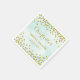Personalised napkins for bridal shower in light turquoise blue watercolor pattern with gold confetti. Please note gold is photographic effect only.