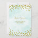 Custom engagement party invitations in light turquoise blue watercolor pattern with gold confetti. Please note gold is photographic effect only.