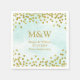 Monogram wedding napkins in light turquoise blue watercolor pattern with glamourous gold confetti. Please note gold is photographic effect only.