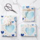 Blue Watercolor & Gold Glitter Hearts Wrapping Paper Sheet