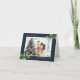 Elegant blue photo Christmas card featuring a watercolor painting of holly and berries. Easily add your favourite photo, change the text, or the background colour of this custom blue holiday folded card.