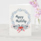 Blue Watercolor Leaves Wreath Happy Birthday Card