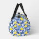 This Blue French Country lemon duffle bag blends sunny yellow lemons with rich blue leaves for a fresh Mediterranean look. Perfect for those who love personalized French country decor and timeless blue tile elegance.
