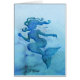A silhouette of a mermaid with long curling hair in a blue watercolor style colouring. Beautiful fantasy creature, nice for ocean and beach lovers.