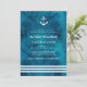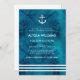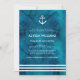 These stylish bridal shower invitations have a trendy, blue watercolor look background, and three white stripes and a matching anchor to complete the design.