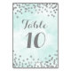 Table number cards with custom text in light turquoise blue watercolor pattern with silver confetti. Please note silver is photographic effect only. Customise these cards with your table numbers for a special addition to your wedding tables. Also suitable for birthdays and anniversary parties.
