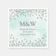 Monogram wedding napkins in light turquoise blue watercolor pattern with glamourous silver confetti. Please note silver is photographic effect only.