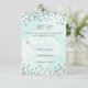 Wedding RSVP cards in light turquoise blue watercolor pattern with glamourous silver confetti. Please note silver is photographic effect only.