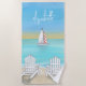Blue Watercolor Simple Coastal Beach Sailboat Beach Towel