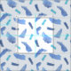 The blue spots are drawn in watercolors and with oil pastels and placed on a light blue background.