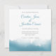 A simple, lovely wedding invitation with watercolor style clouds along the bottom edge.