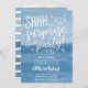 Edit the text to personalise this fun and blue surprise birthday party invitation. Features a blue watercolor background, and fun accents.