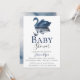 Watercolor swan in deep blue with reflection and matching watercolor backing Baby Shower Invitation. Personalise text, font style, colour and size.