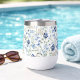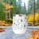 Relax after your workout with a nice wine in this wine tumbler with a beautiful blue boho wildflower pattern.