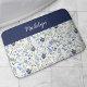 Blue Watercolor Wildflower Monogram Name Bath Mat