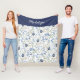 Blue Watercolor Wildflower Monogram Name Fleece Blanket