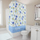 Blue Watercolor Wildflower Monogram Name Shower Curtain
