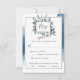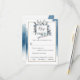 Captivating RSVP card with the ability to add or remove entree choices. Flowing blue watercolor stain as backdrop, elegant metallic frame and exquisite floral detail on the top with foliage in blue, sage, grey and caramel tones. Back with blue watercolor flowing stain. Part of our "Rustic Blue Mountains wedding and events collection".
