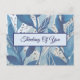 Share comfort and care with this hand-painted "Thinking of You" card, featuring an elegant hand-painted water color leaf design in calming shades of blue hues. This card offers a versatile choice for a variety of sentiments : such as sympathy, get well, encouragement, keeping in touch or simply letting someone know they are in your thoughts. Personalize with your own heartfelt message. #enocuragement card #thinking of you. Ideal cards to have on hand for those unexpected occasions where a beautiful water color card suits the situation. Designed and Painted by Waikanae Paper Artist - Nicky Bourke.