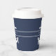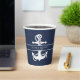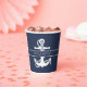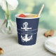 The pieces of this elegant wedding suite feature classic nautical styling with a clean, minimalist look. Stylistic waves in shades from aqua to navy blue and an anchor and rope illustration provide unique accents. A navy blue background with fine white piping and large anchor image give this wedding paper cup a striking modern look. Perfect for yacht club, boat, beachside or summer destination weddings. Search ID836 to see this complete suite and others with alternate marine element accents.