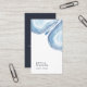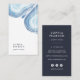 Chic watercolor business cards in a unique vertical format feature your name or company name in the lower left corner, with two geode agate slice illustrations in oceanic blue watercolor. Add your full contact information to the back in white on deep navy blue. Includes three social media icons and a template field for your username.