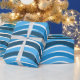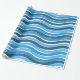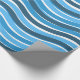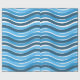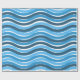 Shades of blue and white wavy lines pattern fun retro style custom wrapping paper.