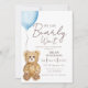 Throw the sweetest We Can Bearly Wait boy baby shower with this adorable watercolor bear invitation with a cute teddy bear holding a blue balloon adding charm and sweetness.