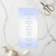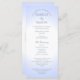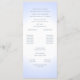 Elegant blue wedding program card is two sided with ceremony details on front and wedding party participants on the back.