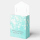 blue wedding favour boxes with white ribbon. Cute rustic and vintage favour box with string lights dots.