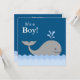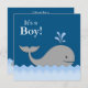 Adorable navy blue whale baby shower invitation with a cute blue wave on the front and back with anchor. Add your details to the front and/or back by adding your event details, font style, font size & colour, and wording.