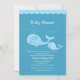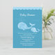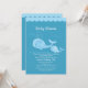 In a blue sea with tiny polka dots, a mummy whale is followed by a baby whale. An adorable design for a baby shower.