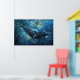 Blue whale swimming in the sea poster