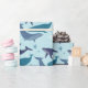 Three big blue whales swimming with their starfish friends adorn this wrapping paper. The body of the whales have a slight texture for added interest.