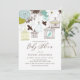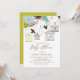 Invite guests to your event with this customisable baby shower invitation. It features blue and chartreuse birdcages, lovebirds, and flowers. It is perfect for spring and outdoor baby showers. Personalise by adding your details. Other colours are available.