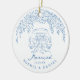 Personalized first Christmas married ornaments feature whimsical hand drawn doodle floral and wedding car in blue and white, modern and elegant.