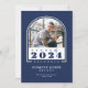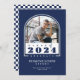 Blue and White Modern Arch "Class of 2024" Photo Graduation Announcement. All colours are customisable using the Edit Tool. Chequered Pattern on the back can be hidden or deleted. © Kimbellished, LLC