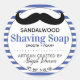 Our simple shaving soap label features a moustache icon, bold typography in blue and white which appeals to both women who are looking for gifts for men and men who are looking to treat themselves. All text is customisable to match your artisan soap offerings. #ShavingSoap #GiftsForMen #Artisan || If your product is liquid or created by volume instead of weight, use "FL. OZ." or "Fluid Ounces."