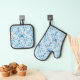 Blue White Batik Floral Bridal Shower Oven Mitt & Pot Holder Set