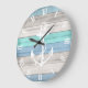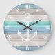 Blue & White Beach Wood Nautical Stripes & Anchor Large Clock