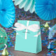 Blue & White Bow Elegant Party Favour Boxes. Customise the text for any event. Matching items are available.