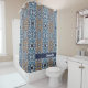 Beautiful, trendy, artistic, loft, industrial style tile pattern shower curtain, featuring a custom name or short text, designed by PiccoGrande.