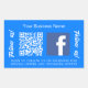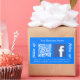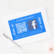 A light, bright blue background. Personalise and add your business name, your own qr code to your Facebook account and a text. White text. With the text x2: Follow us!