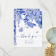 The design includes a delightful array of lotus flowers and butterflies, rendered in a blue and white colour scheme that evokes the elegant beauty of chinoiserie chic, reminiscent of the classic blue willow pattern, with a modern style text layout of "thank you" message.