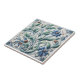 Vintage but Modern blue & white floral ceramic tile with a flat surface and a 3-D look. Fine for showers, backsplashes, coasters, party or wedding favours. The art nouveau style is romantic. Flowers and a twisting vine w/ green leaves.