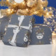 Blue White Champagne Gold Ornaments Christmas Wrapping Paper