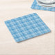 Blue White Checker Abstract Pattern Square Paper Coaster