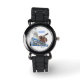 Great looking sporty cheerleader's watch with blue, white, and silver graphic of cheerleader's megaphones and a football. Graphic text reading Cheer runs across the the bottom blue megaphone and blue custom text, on the top of the watch face, is ready to personalise with your favourite cheerleader's name. Makes a great gift idea.
