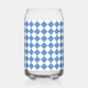 Blue White Chequered Diamond Pattern Can Glass