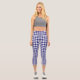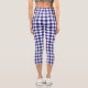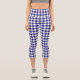 Blue White Chequered Gingham Plaid Pattern Capri Leggings