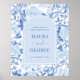 Blue White Chinoiserie Peony Bird Wedding Welcome Poster